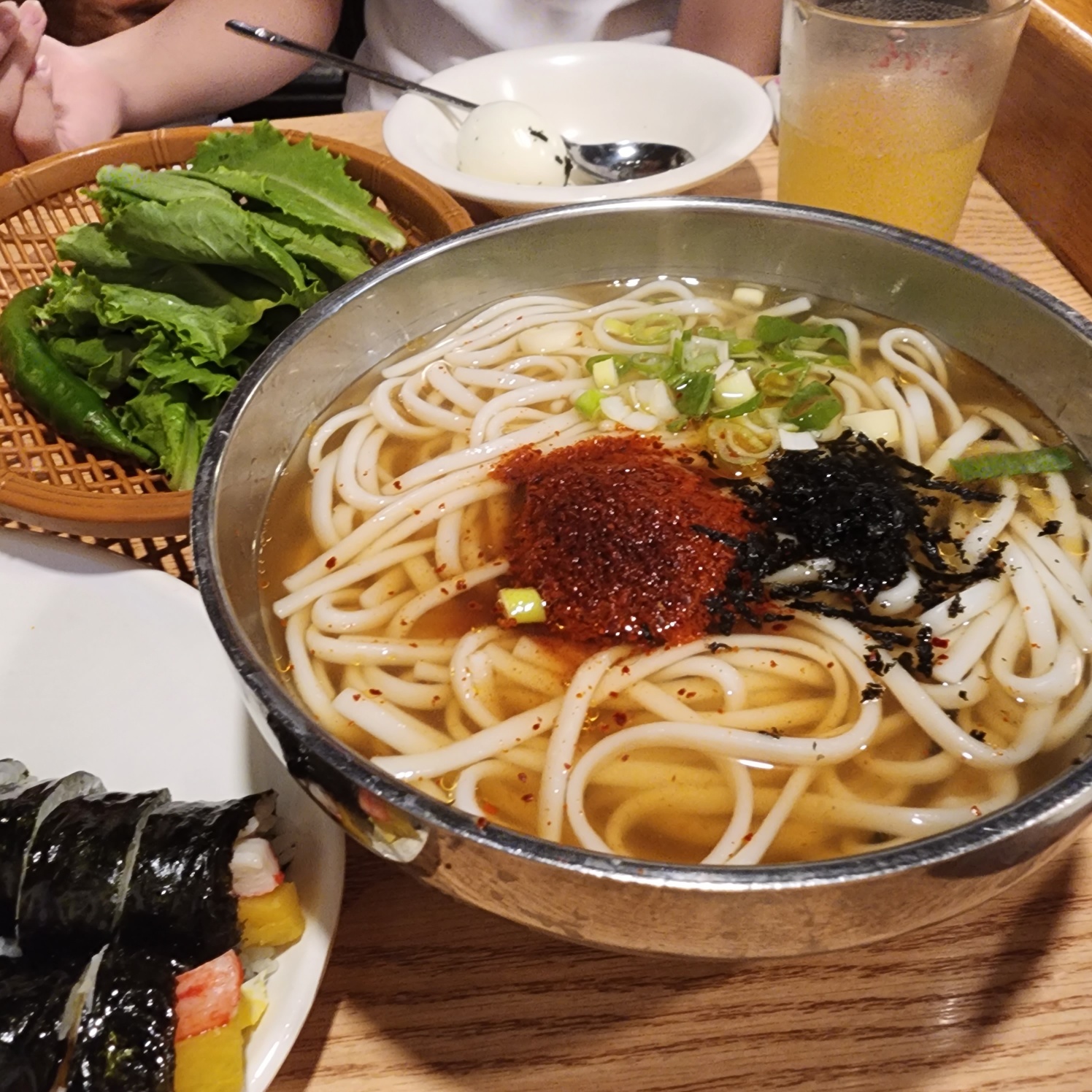 가락국수는 고춧가루가 어마어마하게 많이 들어가 있었어요.